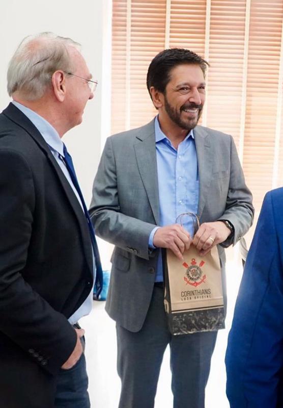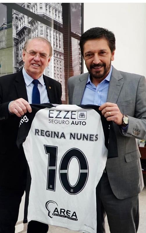 Mayor Ricardo Nunes received the president of Corinthians, who presented an official jersey personalized with the name of Regina Nunes, a passionate Corinthians fan and godmother of the Gaviões da Fiel Social Department.
